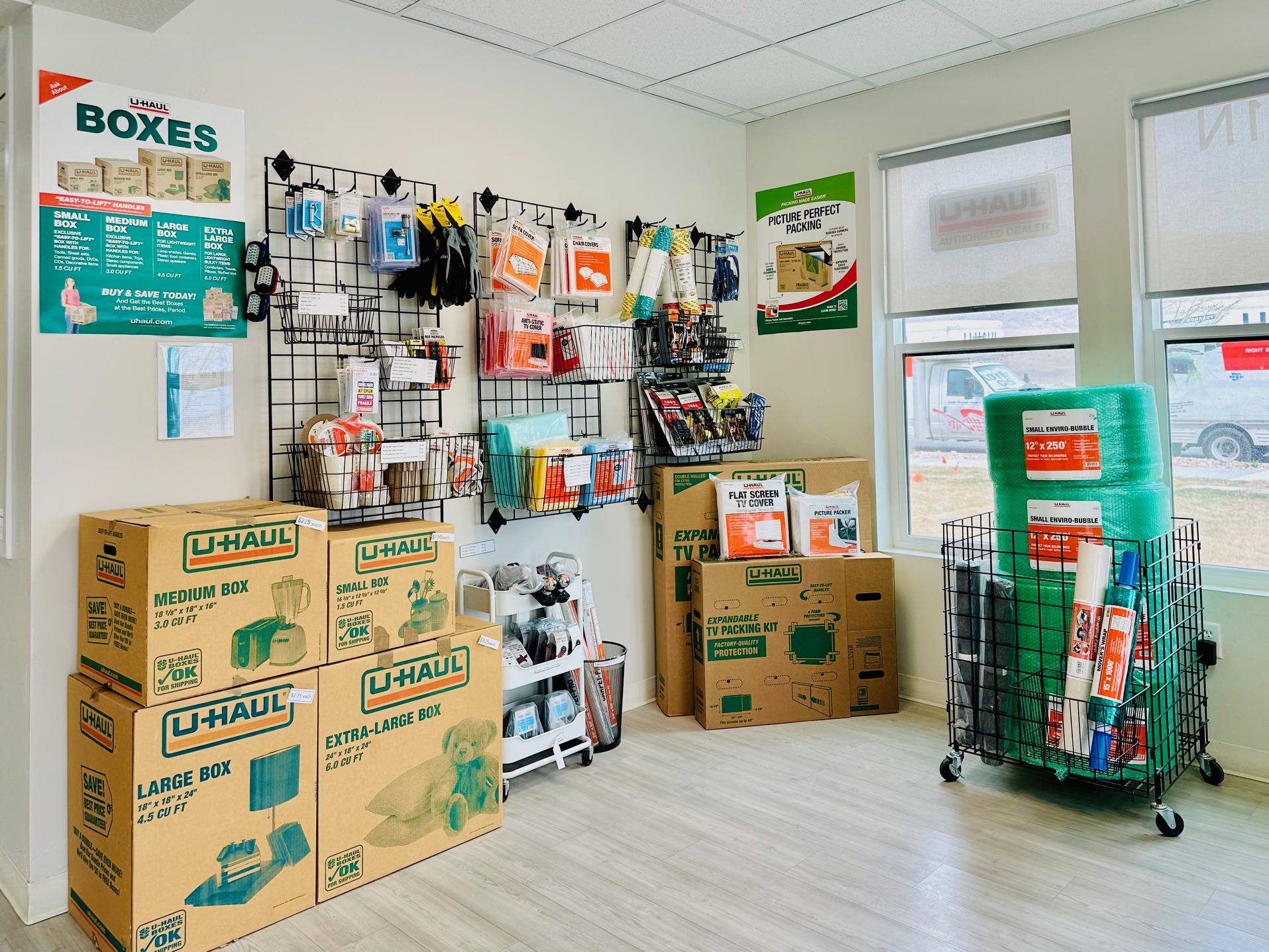 Partnered with U-HAUL to help with all your moving needs! We offer a fully stocked moving supply store. Call to check availability for rentals.